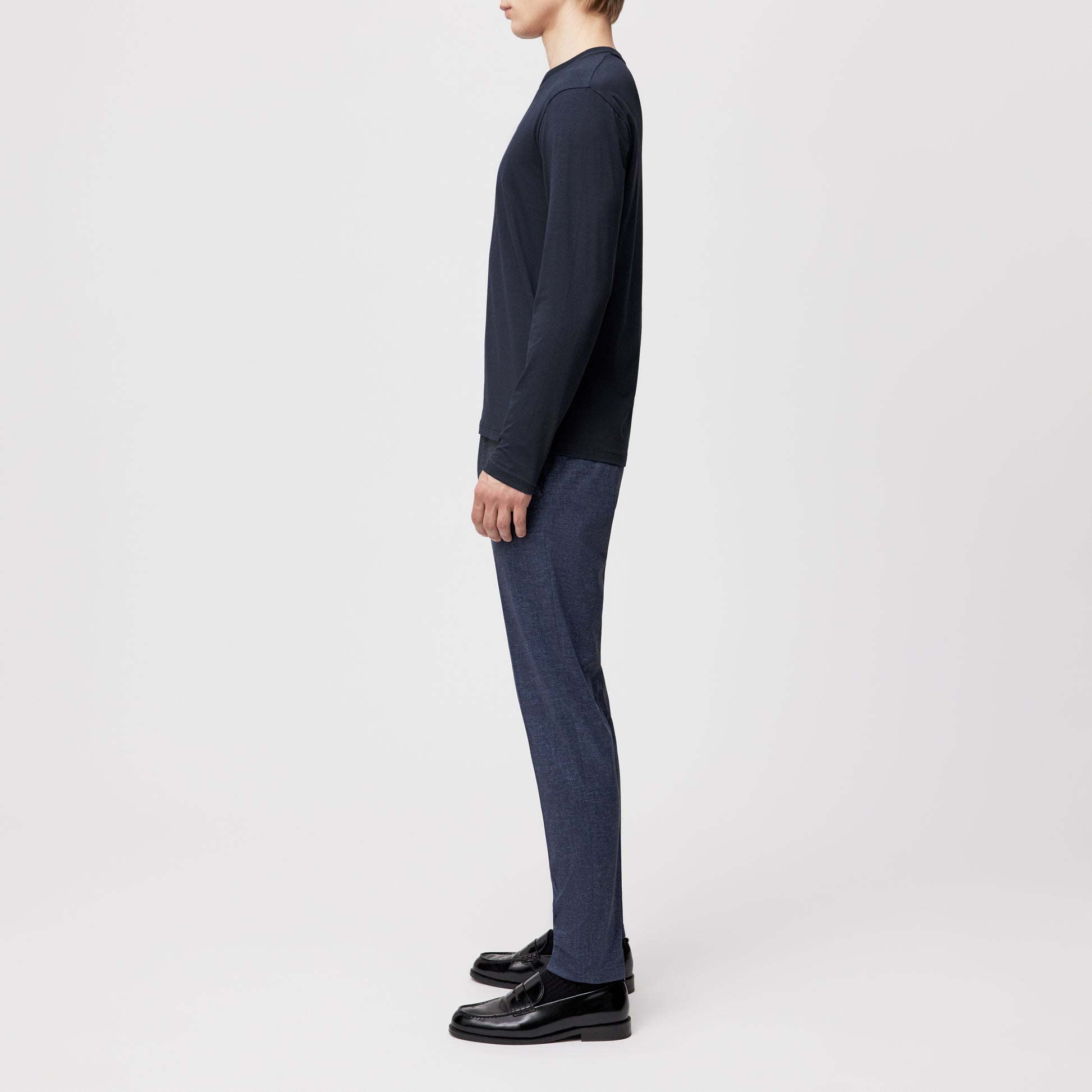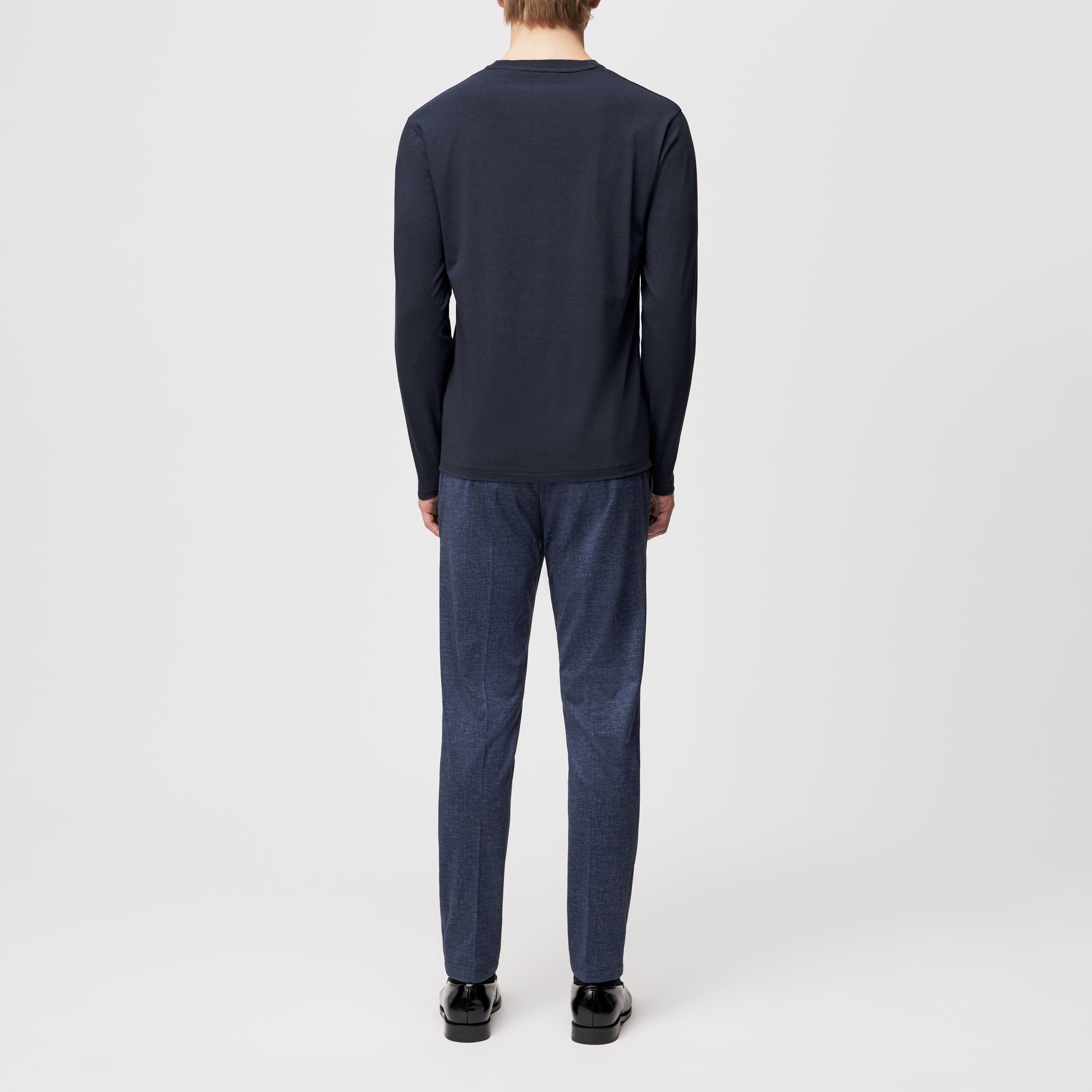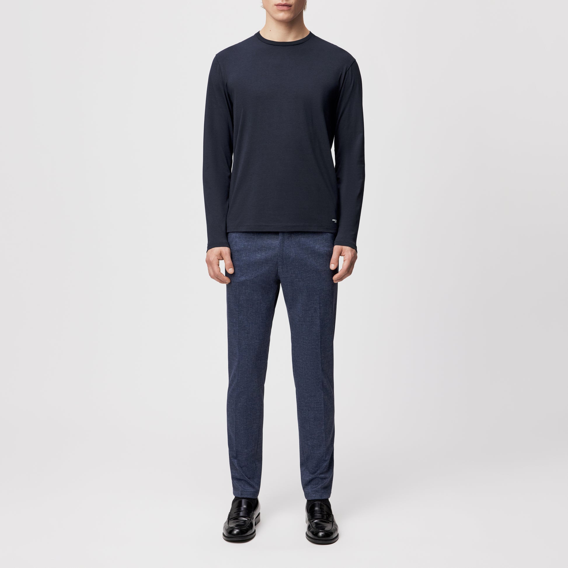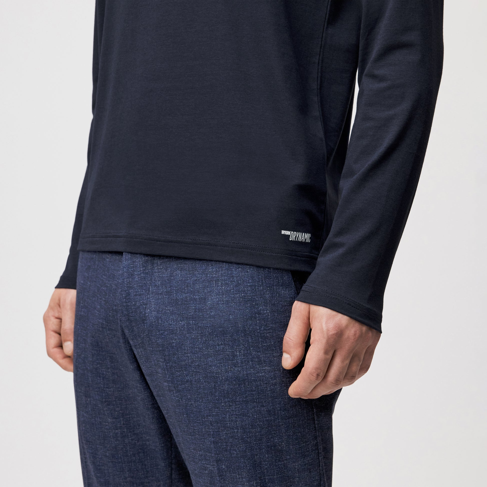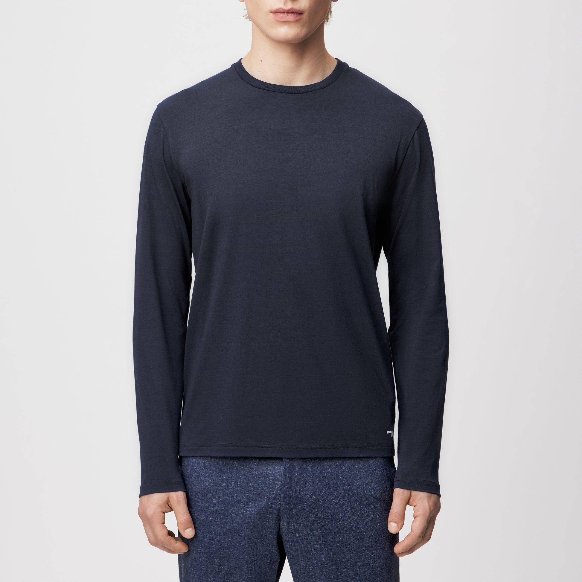 חולצה בגזרה ישרה עם שרוול ארוך, צווארון עגול קלאסי וגימור נקי שמעניק לה מראה על־זמני.היא מהווה בסיס אידיאלי ללוקים קז'ואליים מגוונים, בזכות העיצוב הפשוט והמדויק שלה
