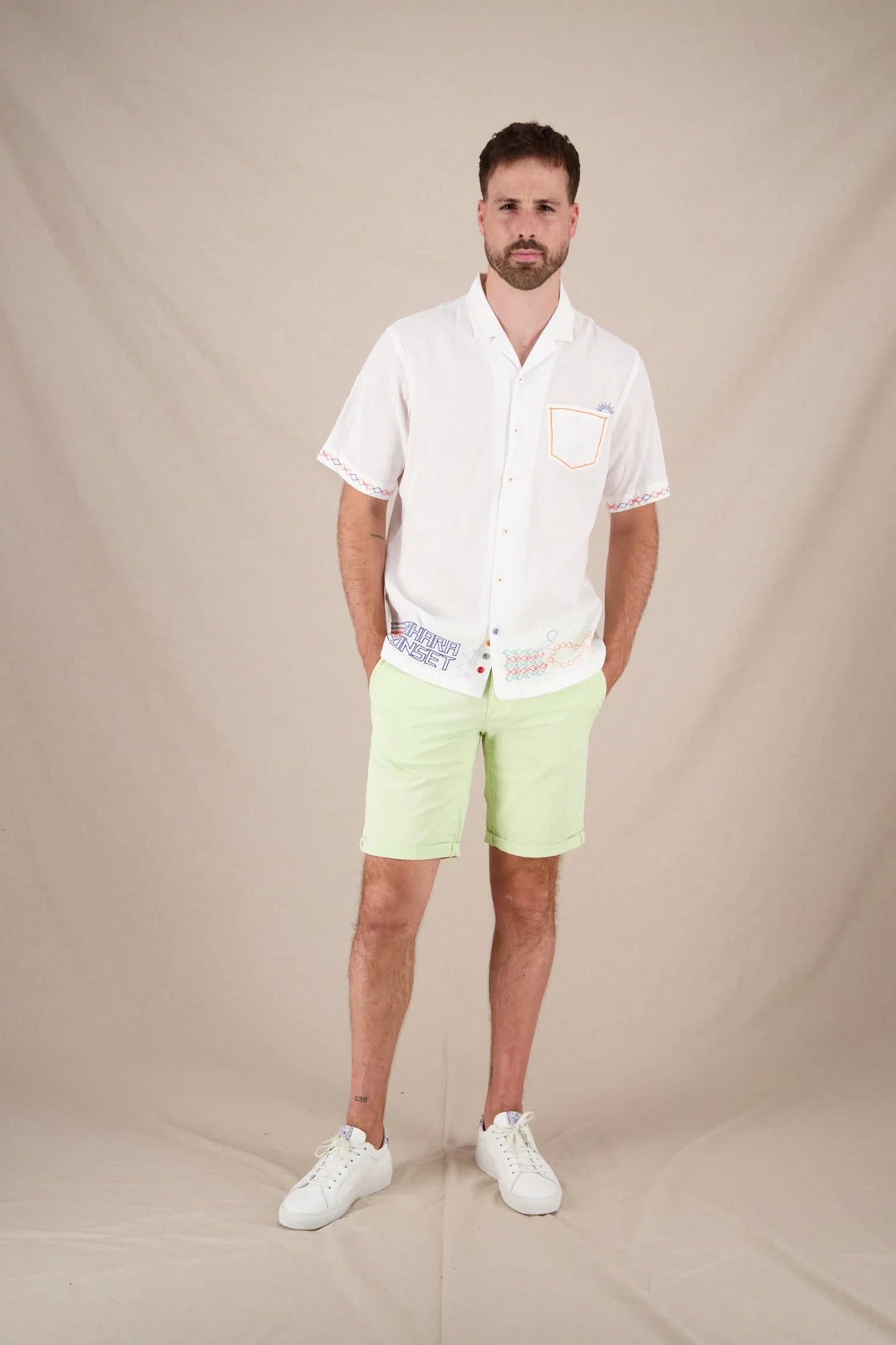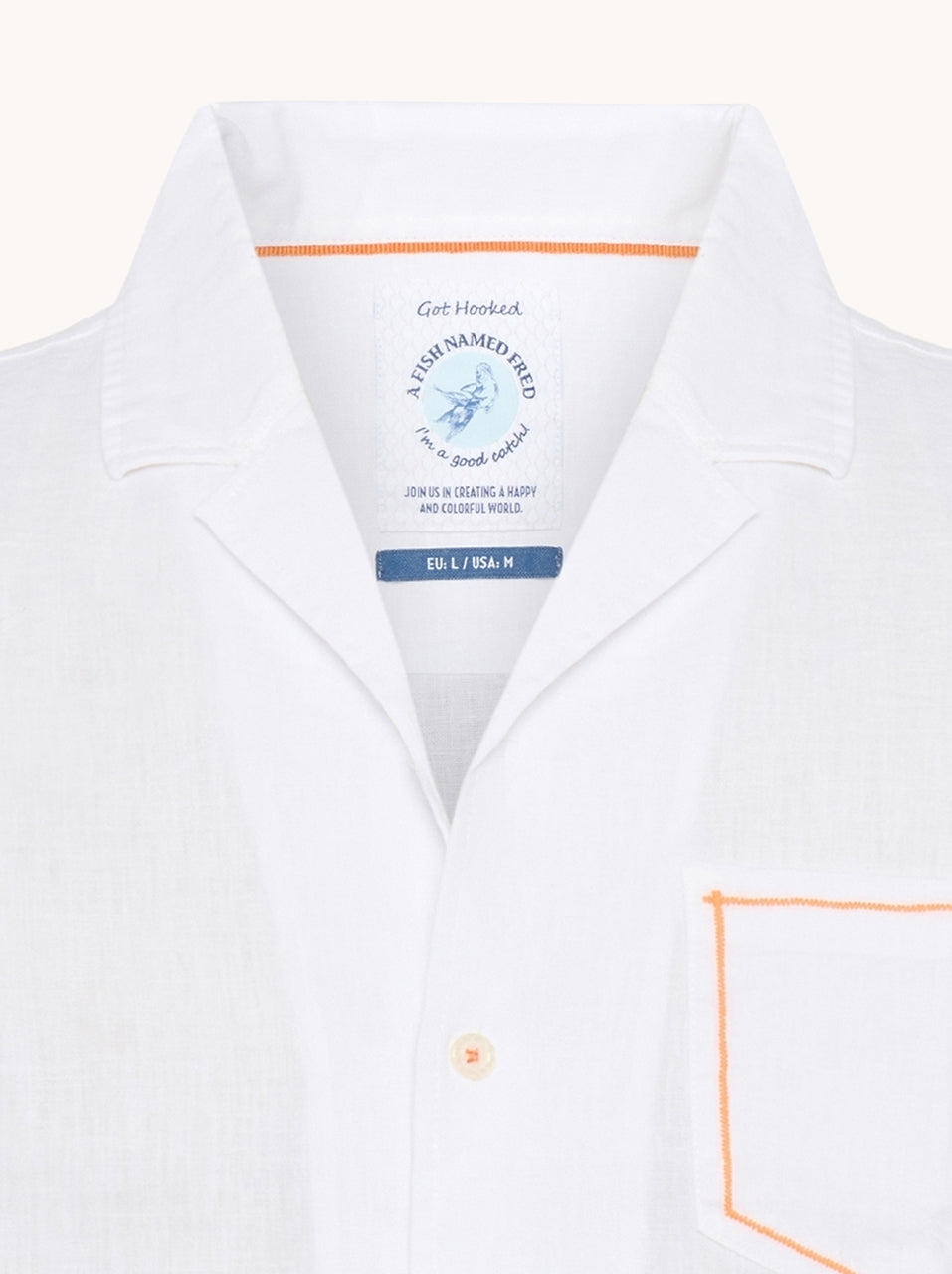 מכופרת פשתן ייחודית עם עיטורים רקומים בגזרה ישרה ומאווררת – אך מחמיאה ואסופה