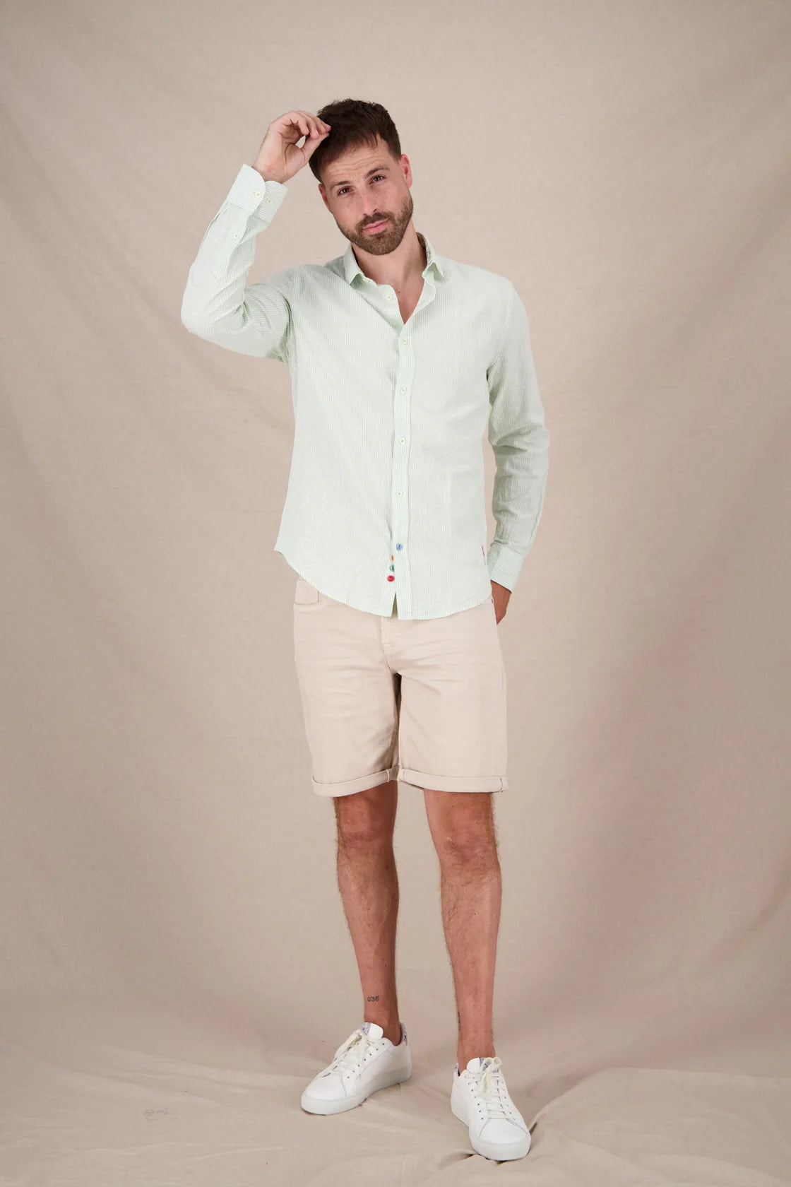 מכופתרת פסים דקיקים מבד קליל ונושם, צבעוניות קלה